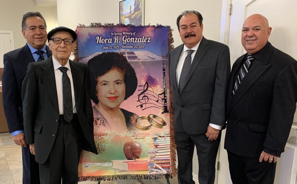 Nora loved to laugh, travel and dance. For more than six decades, she and Pat would attend Friday night football games at the PSJA Stadium, which is directly across the street from their home. On Sunday mornings, Nora would wear her favorite jewelry to church services at La Trinidad United Methodist Church and would sit in the front-row church pew next to Pat surrounded by their sons, their growing families, and other close relatives.