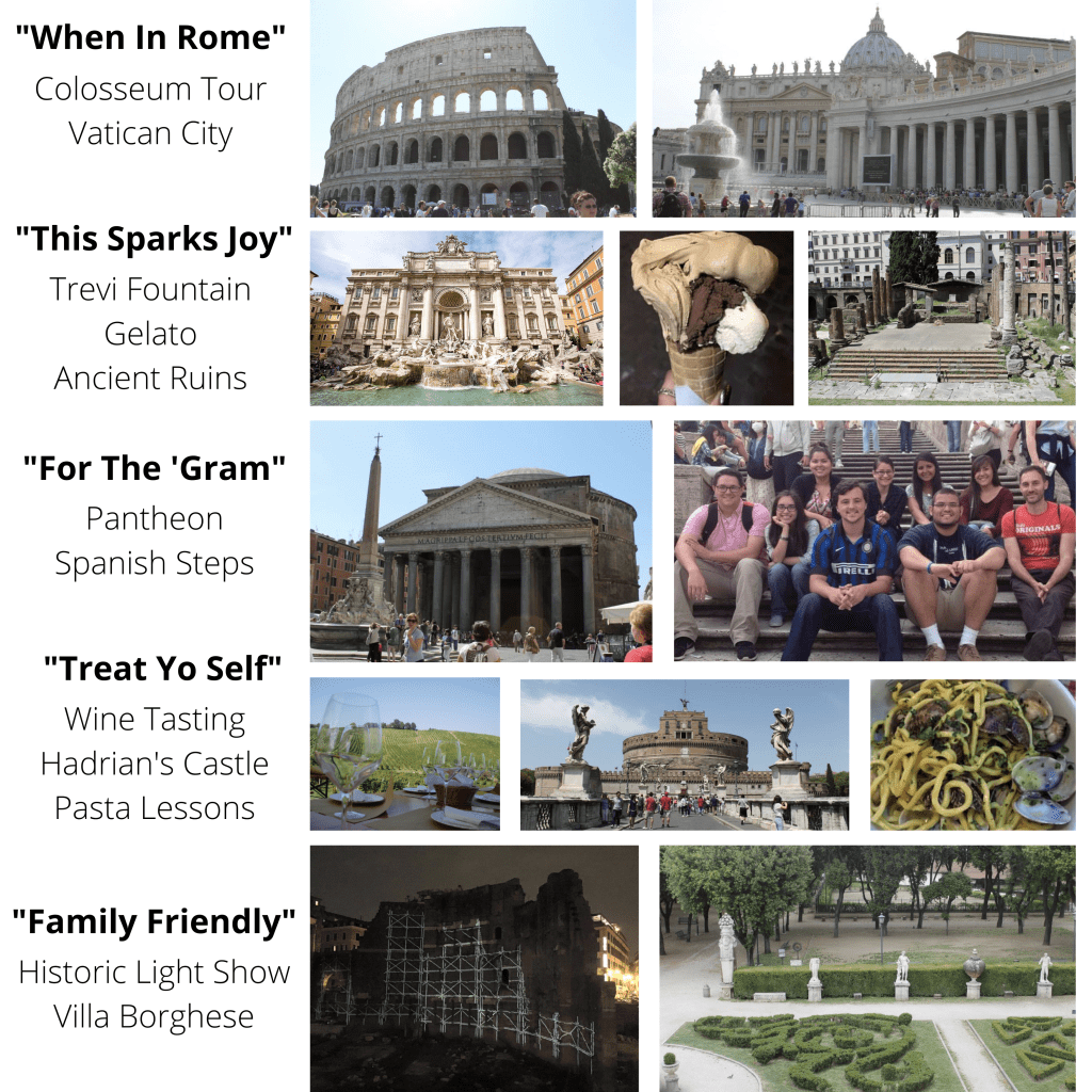 - “When In Rome” – Iconic, must-see attractions for their cultural significance.